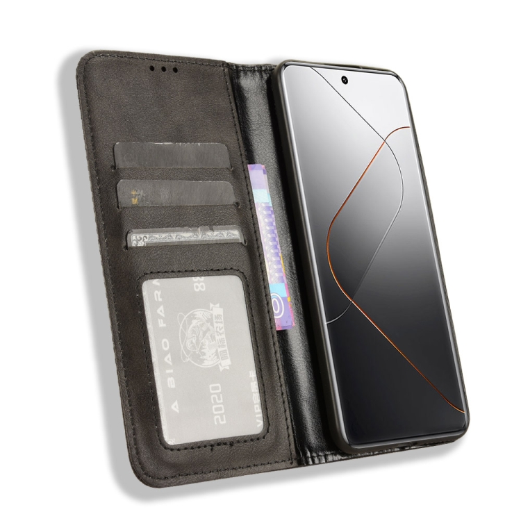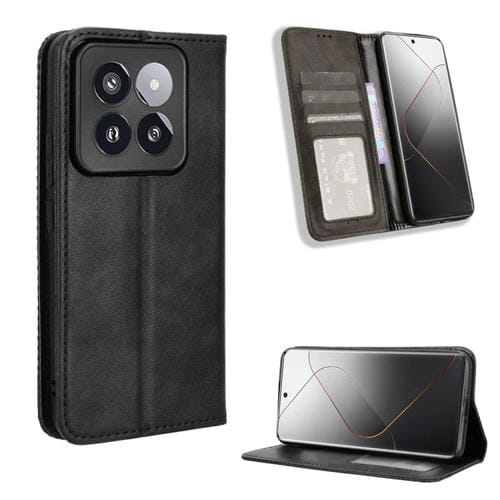 Para Xiaomi 14 Pro Hebilla Magnética Funda De Teléfono De Cuero Con Textura Retro (Negro)