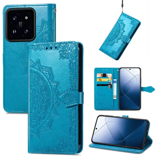 Para Xiaomi 14 Pro Mandala Flower Funda De Cuero Para Teléfono En Relieve (Azul)