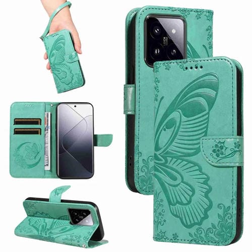 Para Xiaomi 14 Pro Swallowtail Butterfly Funda De Cuero Para Teléfono En Relieve (Verde)