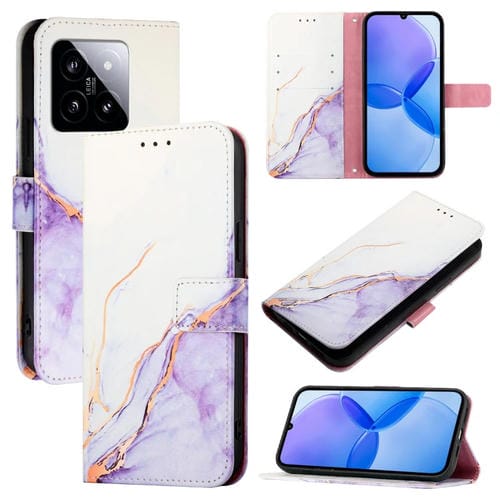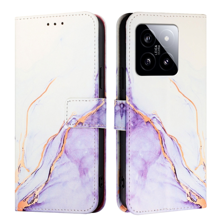 Para Xiaomi 14 Pt003 Funda De Teléfono De Cuero Con Tapa Con Patrón De Mármol (Blanco Púrpura)