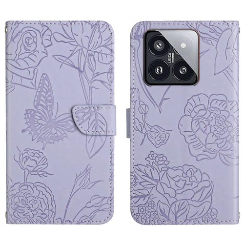 Para Xiaomi 14 Skin Feel Butterfly Funda De Cuero Con Tapa En Relieve (Púrpura)