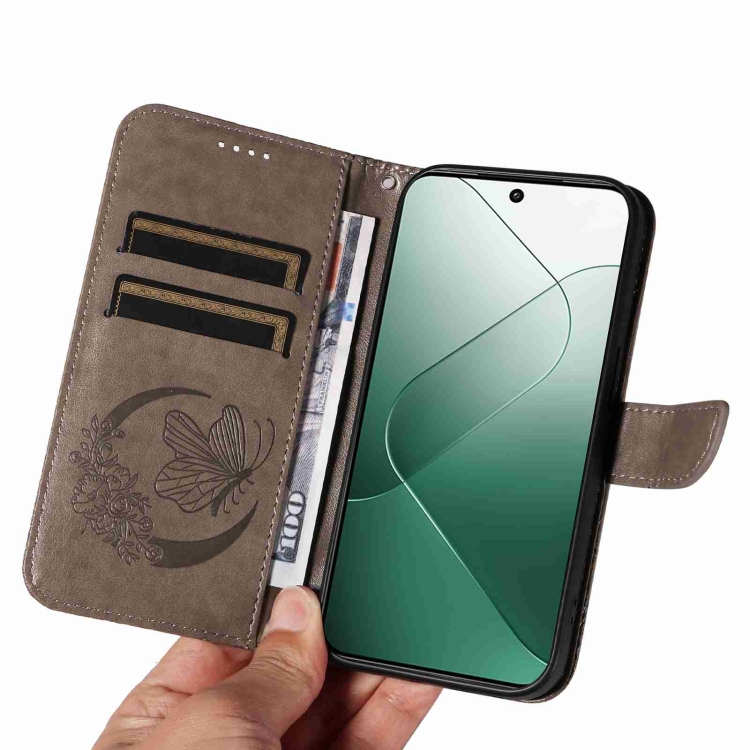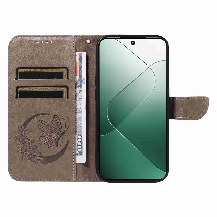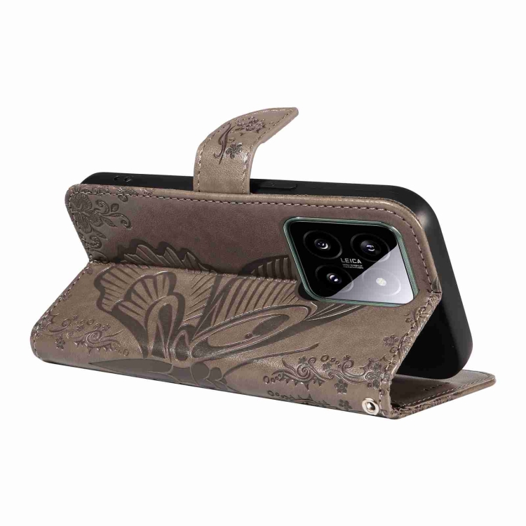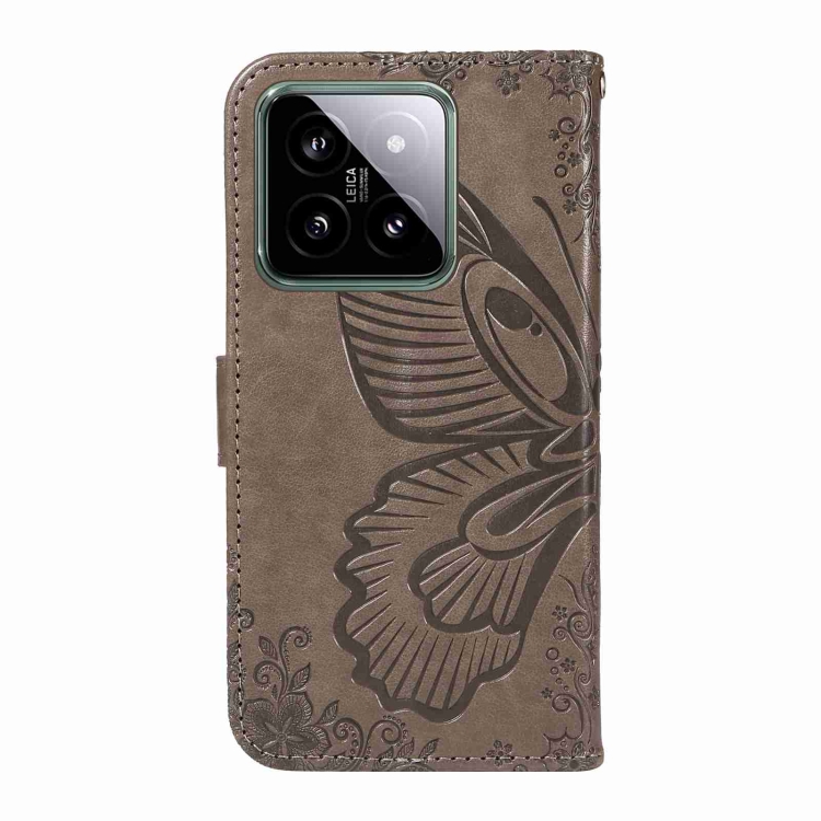 Para Xiaomi 14 Swallowtail Butterfly Funda De Teléfono De Cuero En Relieve (Gris)