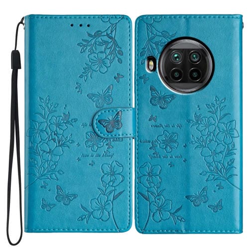 Para Xiaomi Mi 10T Lite 5G Funda de Cuero para Teléfono con Mariposas y Flores (Azul)
