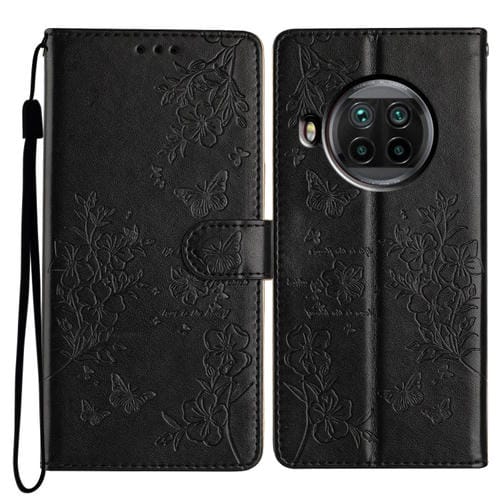 Para Xiaomi Mi 10T Lite 5G Funda de Cuero para Teléfono con Mariposas y Flores (Negro)