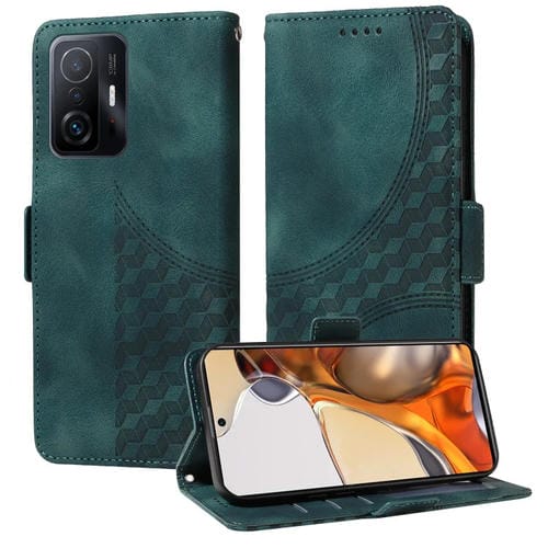 Para Xiaomi Mi 11T / 11T Pro Funda de Teléfono de Cuero Estrellado con Rombos En Relieve (Verde)
