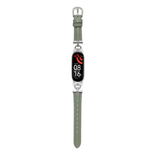 Correa para Xiaomi Mi Band 5/6 de Acero en Forma de D y Cuero Genuino (Verde Plateado)