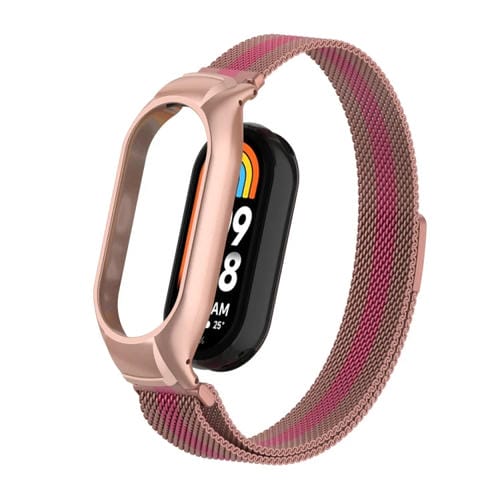 Caja de Metal Integrada para Xiaomi Mi Band 8 + Banda Magnética Milanesa (Rose + Pink)
