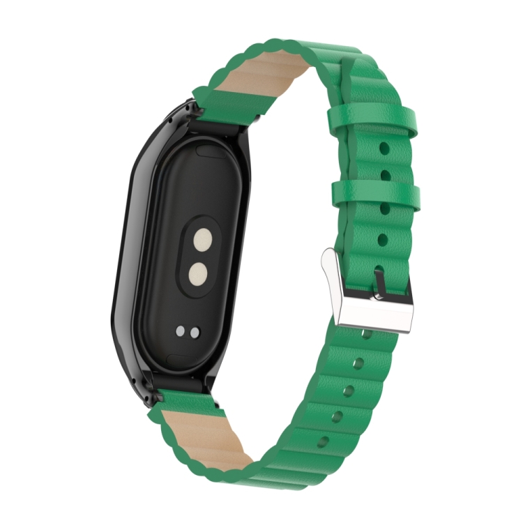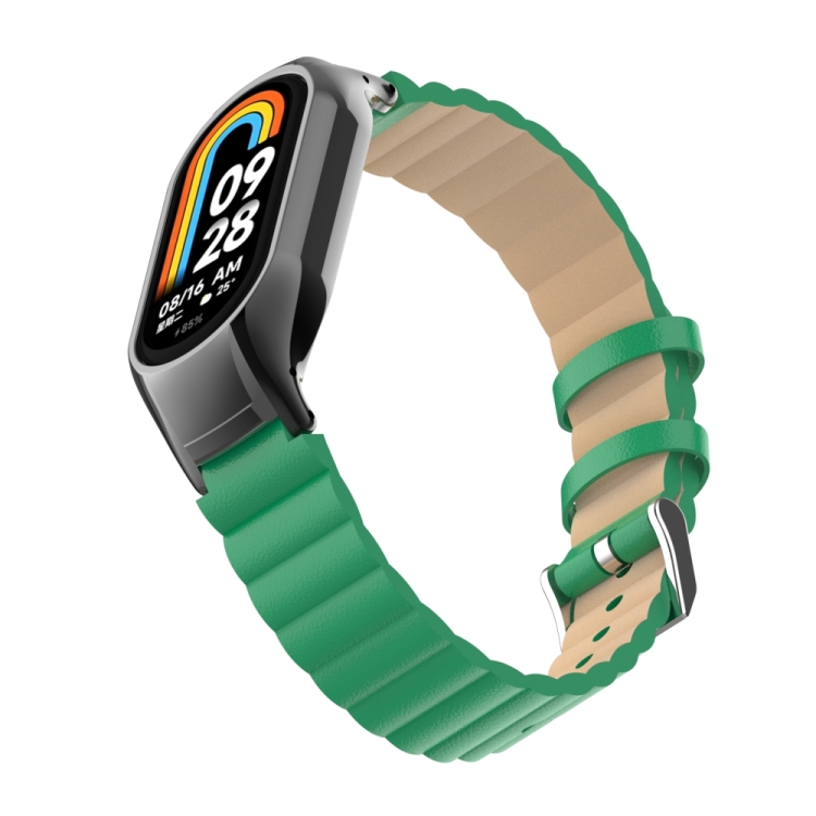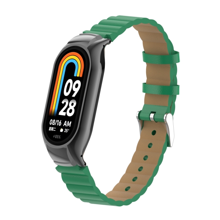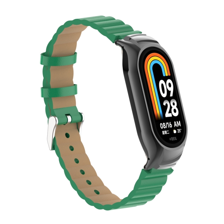 Estuche de Metal + Correa de Cuero de Bambú para Xiaomi Mi Band 8 (Verde)
