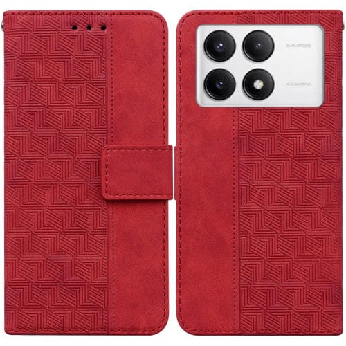Para Xiaomi Poco F6 Pro Funda de Teléfono de Cuero con Relieve Geométrico (Rojo)