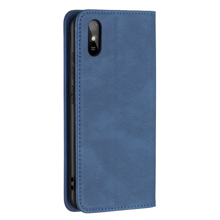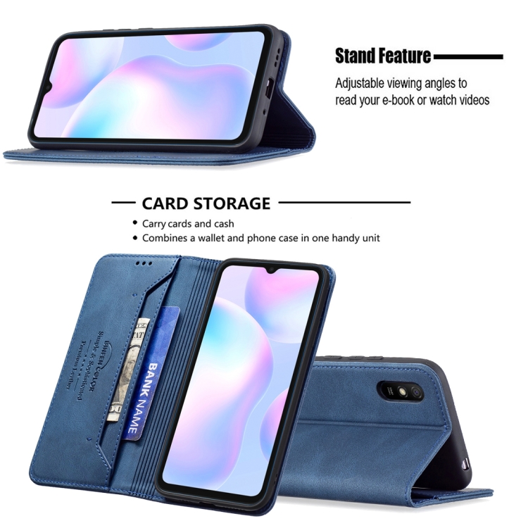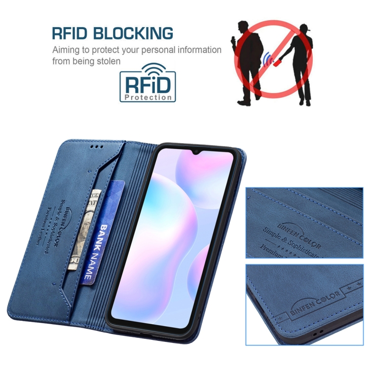Para Xiaomi Redmi 9A Bloqueo de RFID magnético de bloqueo antirrobo con soporte y ranuras para tarjetas y billetera (azul)