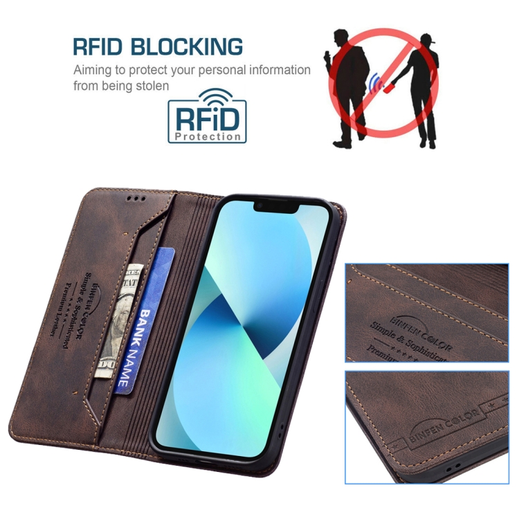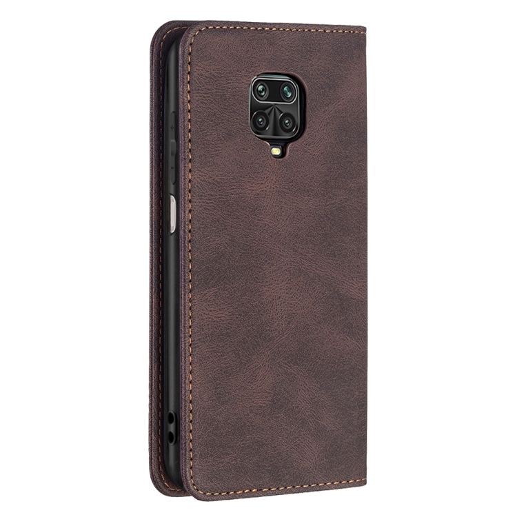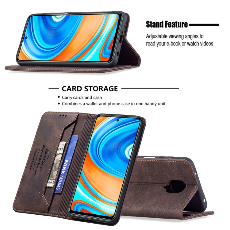 Para Xiaomi Redmi Note 9 Pro Max / Note 9 PRO / Note 9S Funda de cuero antirrobo de bloqueo RFID magnético con soporte y ranuras para tarjetas (marrón)