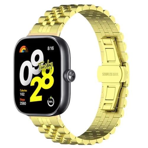 Correa de Reloj Metal para Xiaomi Redmi Watch 4 con Hebilla de Mariposa de Cinco Cuentas (Dorado)