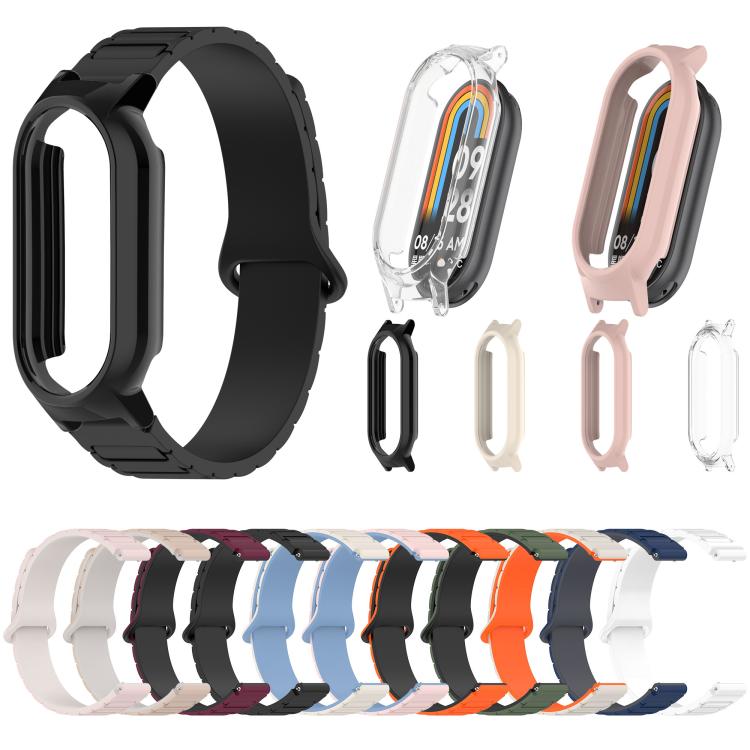 Para Xiaomi Smart Band 9/9 NFC Watch Case Correa de reloj de silicona magnética en forma de I integrada (naranja, negro y transparente)