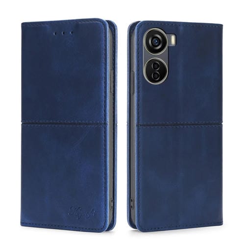 Funda de Cuero Magnético para ZTE Axon 40 Lite con Textura de Vaca (Azul)