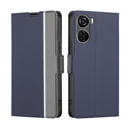 Funda de Cuero para ZTE Axon 40 Lite con Sarga Textura y Botón Lateral (Azul)