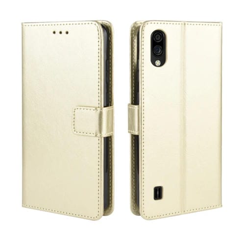 Funda de Cuero ZTE Blade A5 2020 con Tapa Horizontal, Soporte, Ranuras para Tarjetas y Marco de Fotos (Dorado)