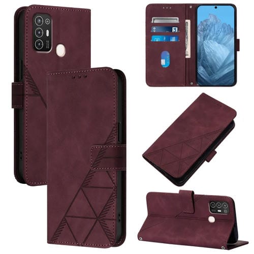 Funda para ZTE Blade A52 Crossbody de Cuero con Tapa en Relieve 3D (Rojo Vino)