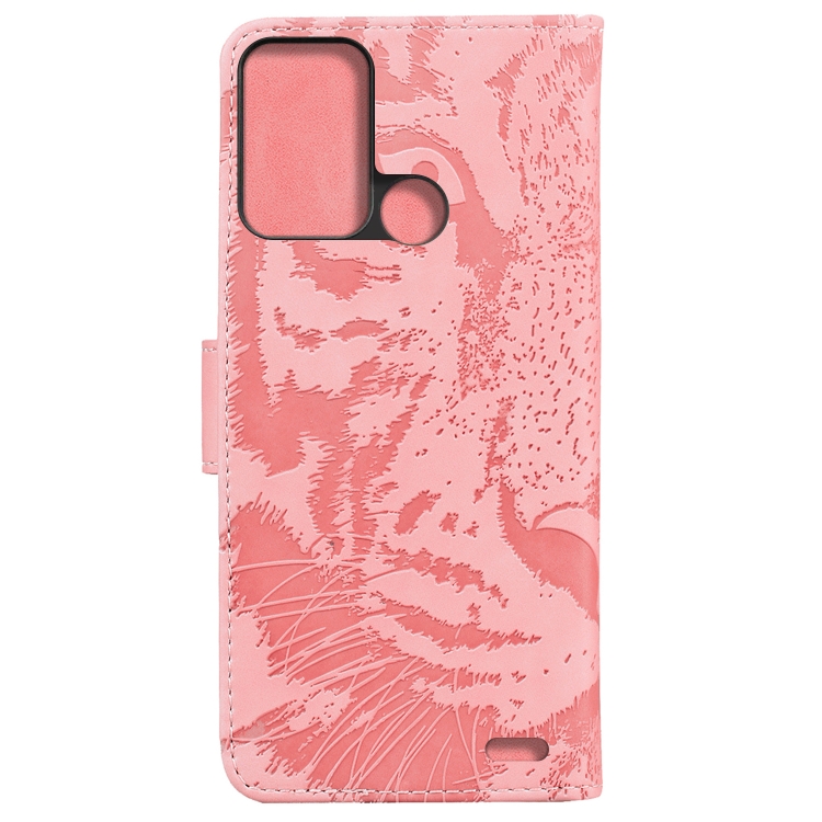 Para ZTE Blade A52 Tiger Patrón de estampado en relieve Caja de cuero Horizontal Flip de cuero (rosa)