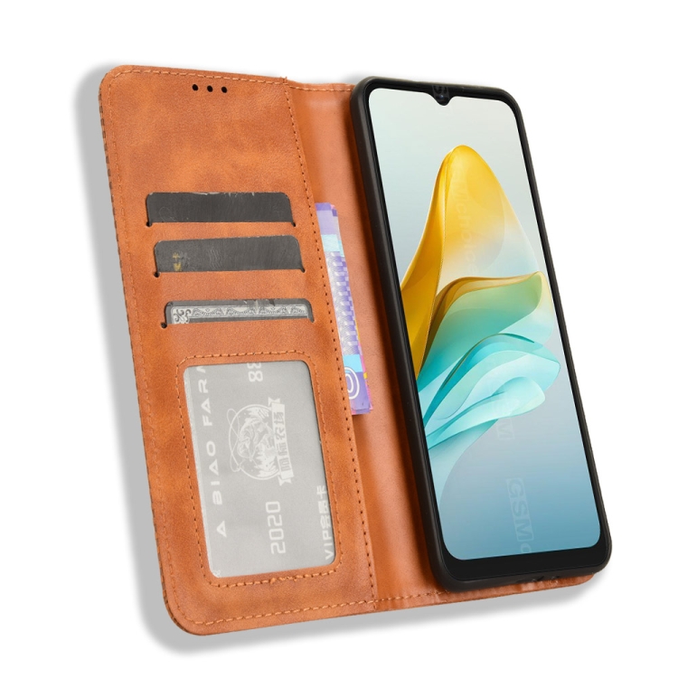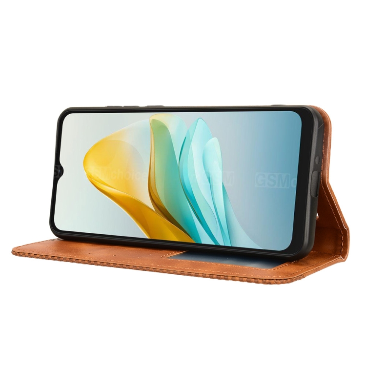 Funda para ZTE Blade A53 Pro de Cuero con Textura Retro y Hebilla Magnética (Marrón)