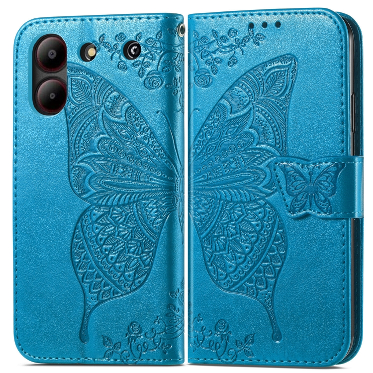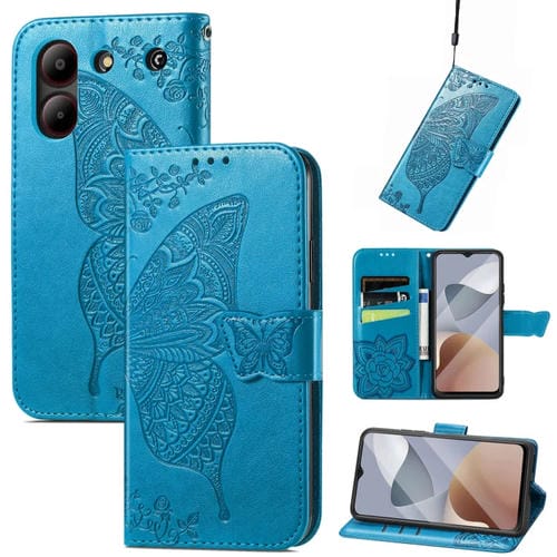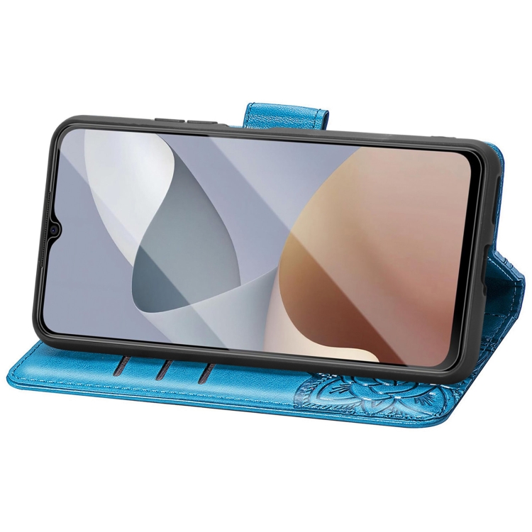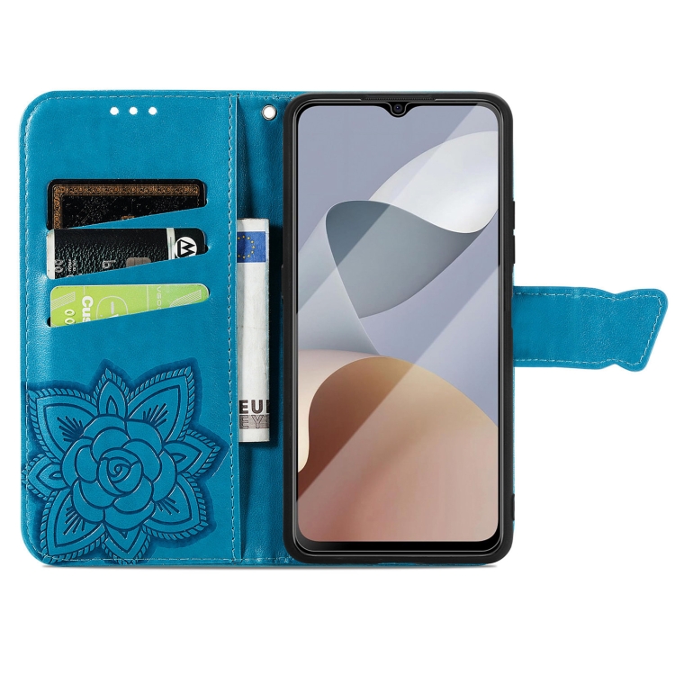 Funda para ZTE Blade A54 de Cuero con Relieve de Flor de Amor y Mariposa (Azul)