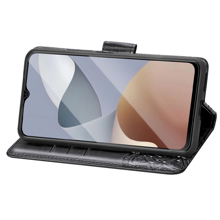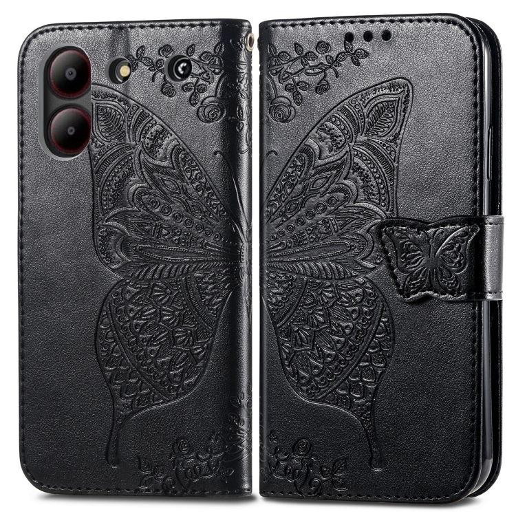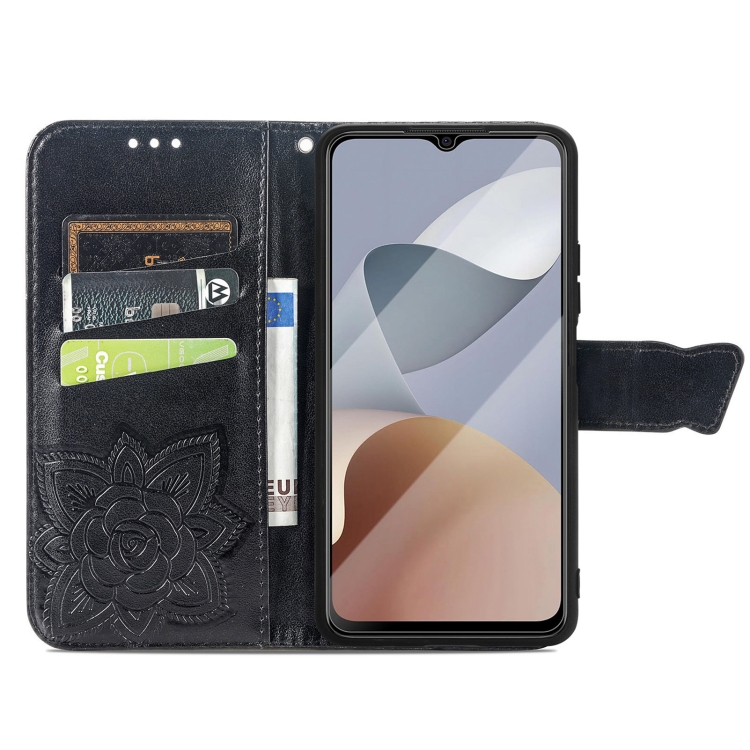 Funda para ZTE Blade A54 de Cuero con Relieve Flor de Amor y Mariposa (Negro)