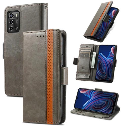 Funda de Cuero Caseneo para ZTE Blade A72 4G con Hebilla Magnética Dual (Gris)