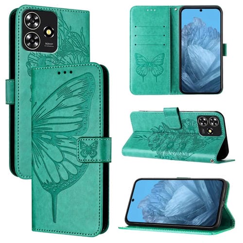 Funda de Cuero para ZTE Blade A73 4G con Mariposa en Relieve (Verde)