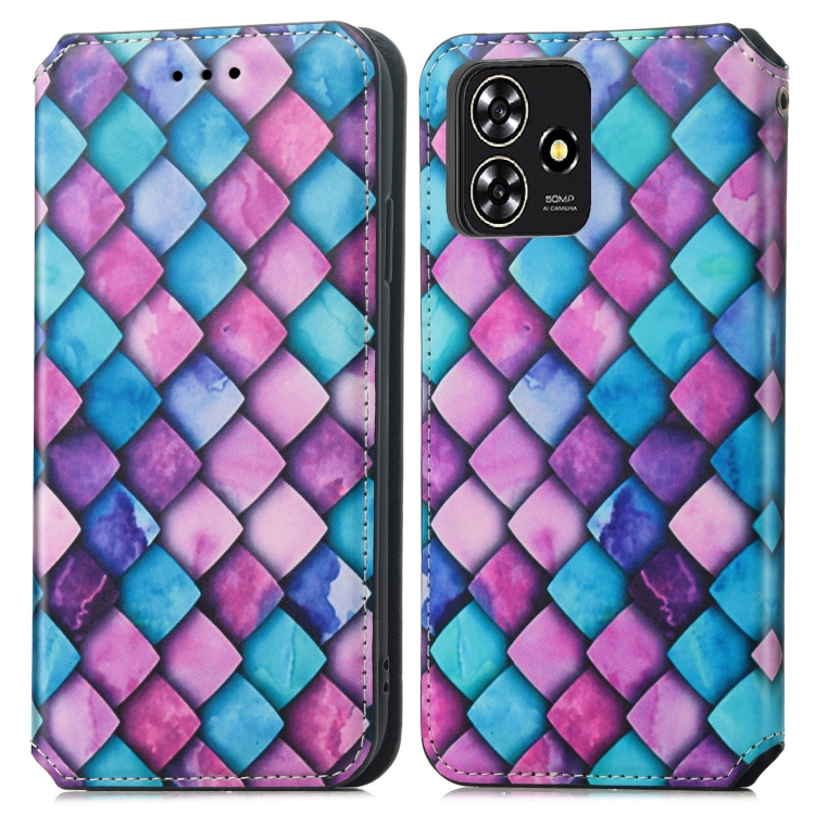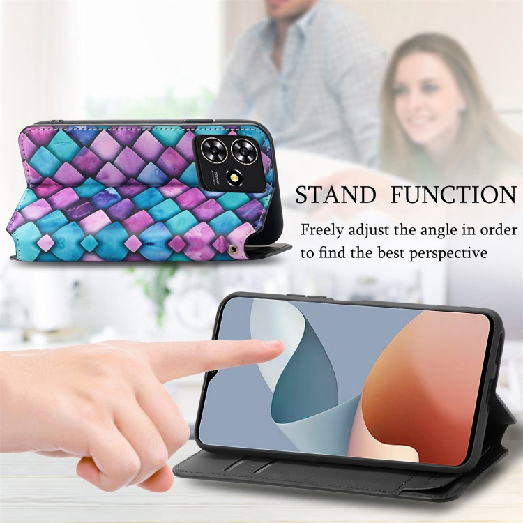 Estuche de Cuero Magnético Caseneo para ZTE Blade A73 5G (Escamas Moradas)