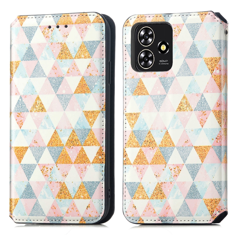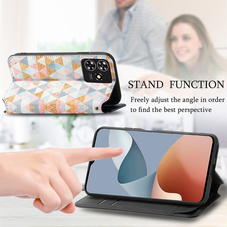 Funda de Cuero Magnética Caseneo para ZTE Blade A73 5G Colorida (Rombo)