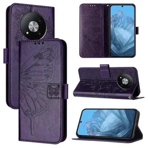 Funda de Cuero ZTE Blade A73 5G con Mariposa En Relieve (Púrpura Oscuro)