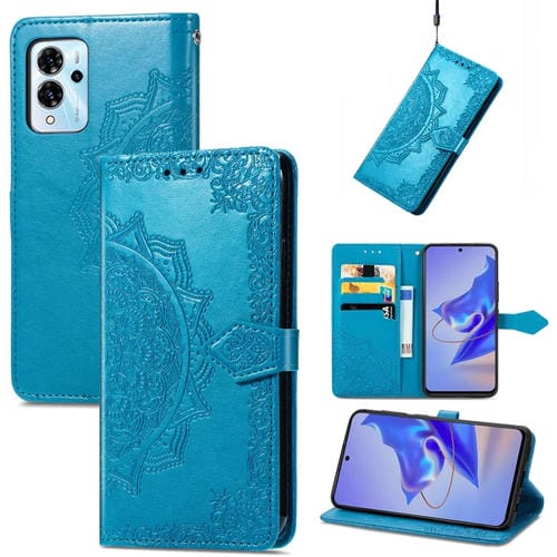 Funda de Cuero En Relieve Mandala Flower para ZTE Blade V40 Pro (Azul)