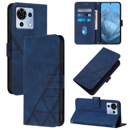 Funda para ZTE Blade V50 Vita Crossbody de Cuero con Tapa en Relieve 3D (Azul)