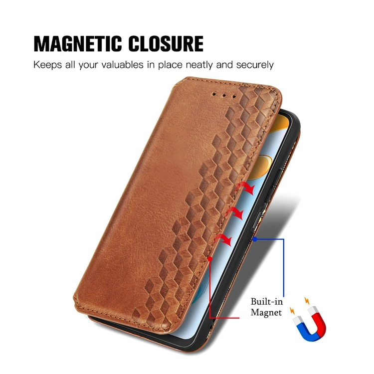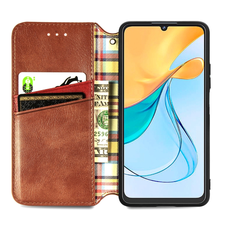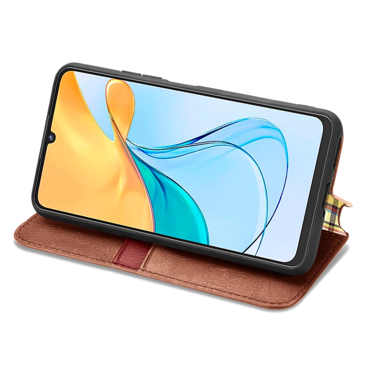 Funda de Cuero Magnético para ZTE Blade V50 Vita Cubic Grid (Marrón)