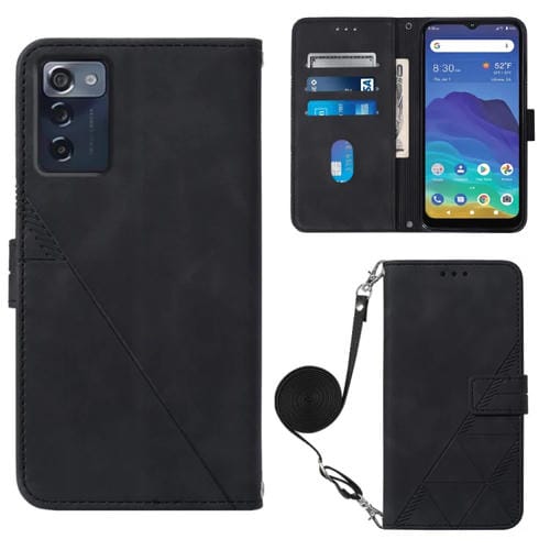 Funda de Cuero ZTE Consumer Cellular Zmax 5G Crossbody 3D con Tapa En Relieve (Negro)