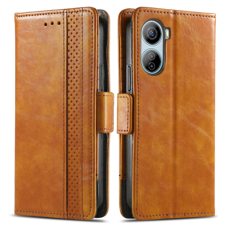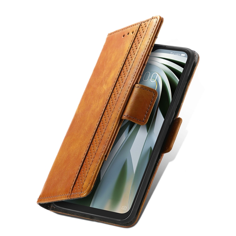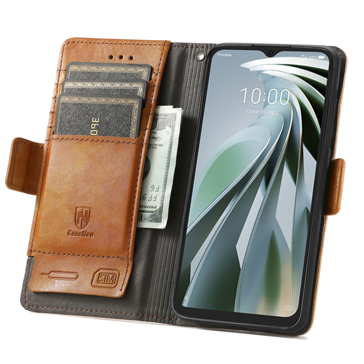 Funda de Cuero Caseneo Splicing para ZTE Libero 5G Iv con Hebilla Magnética Dual (Caqui)