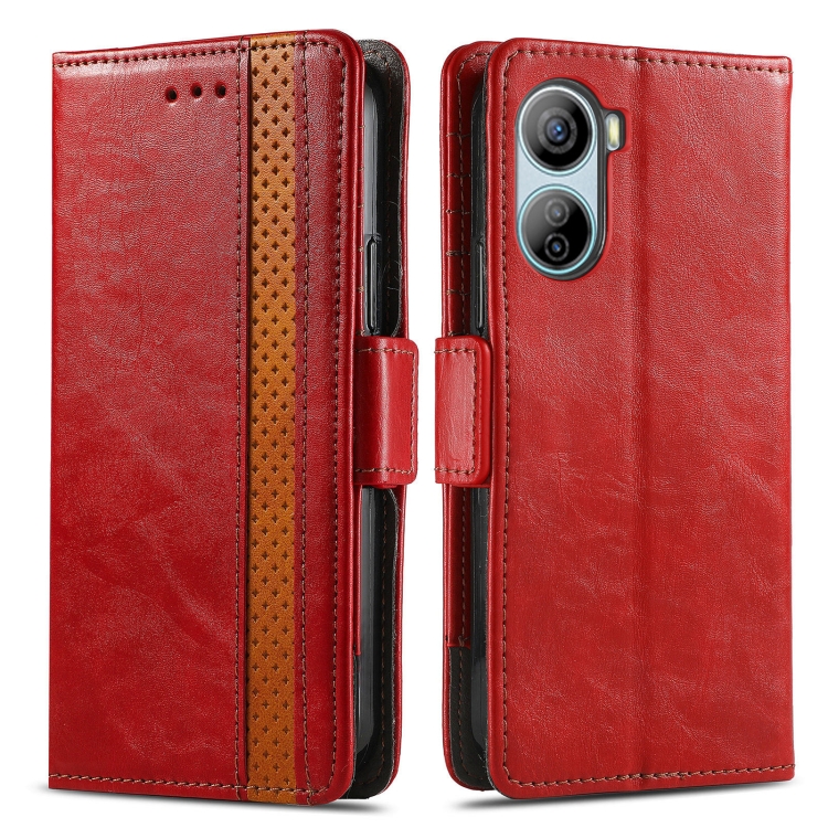 Funda de Cuero Caseneo para ZTE Libero 5G Iv con Hebilla Magnética Dual (Rojo)