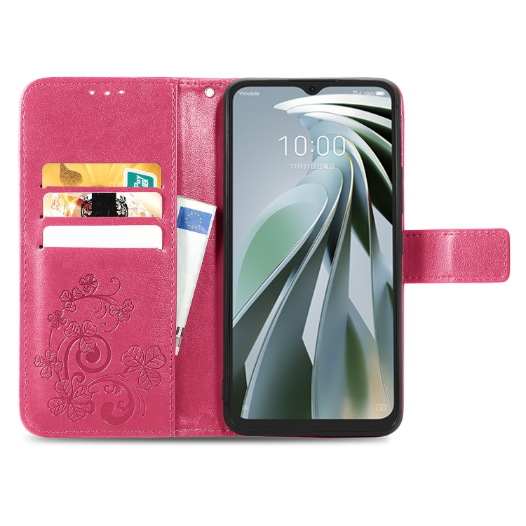 Estuche para ZTE Libero 5G Iv de Cuero en Relieve con Cierre de Cuatro Hojas (Rojo)