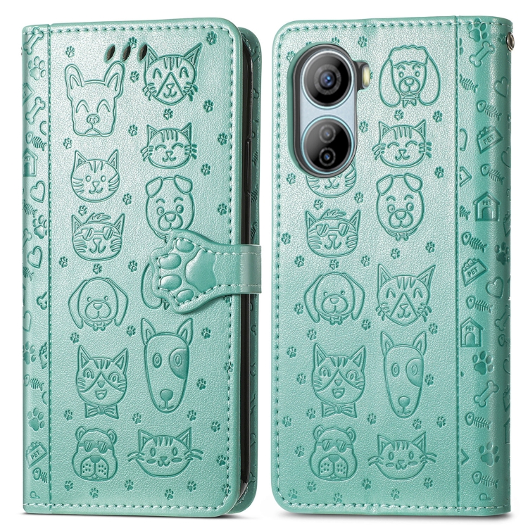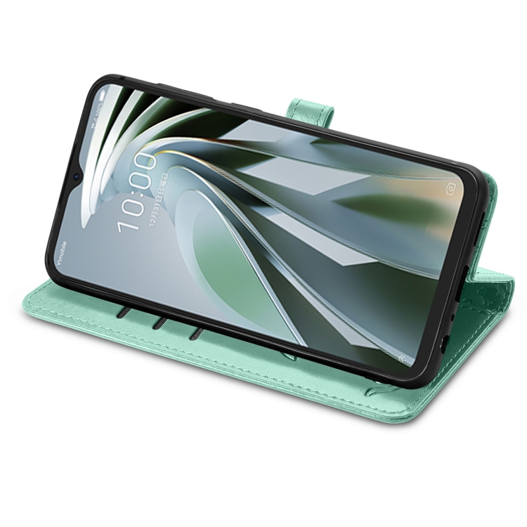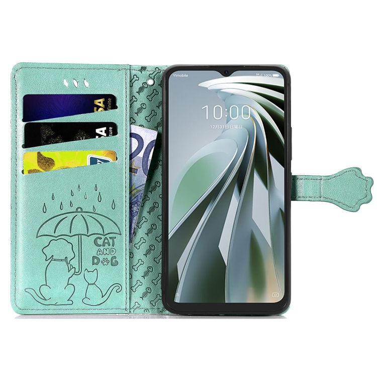Funda de Cuero para ZTE Libero 5G Iv con Relieve Perros y Gatos (Verde)