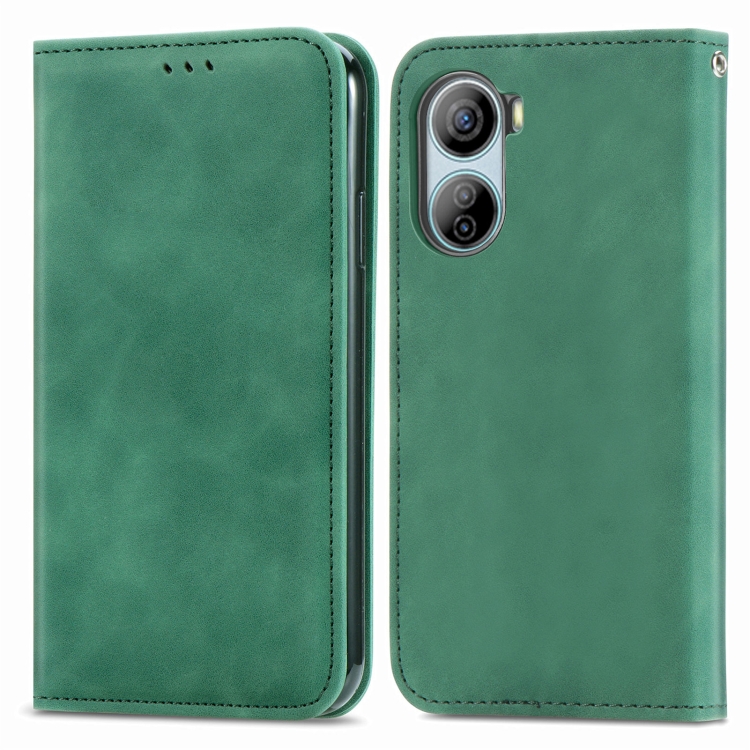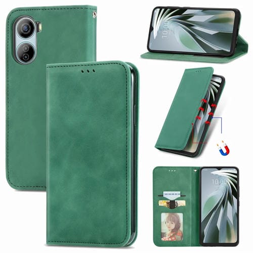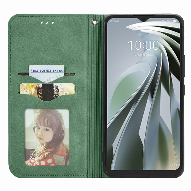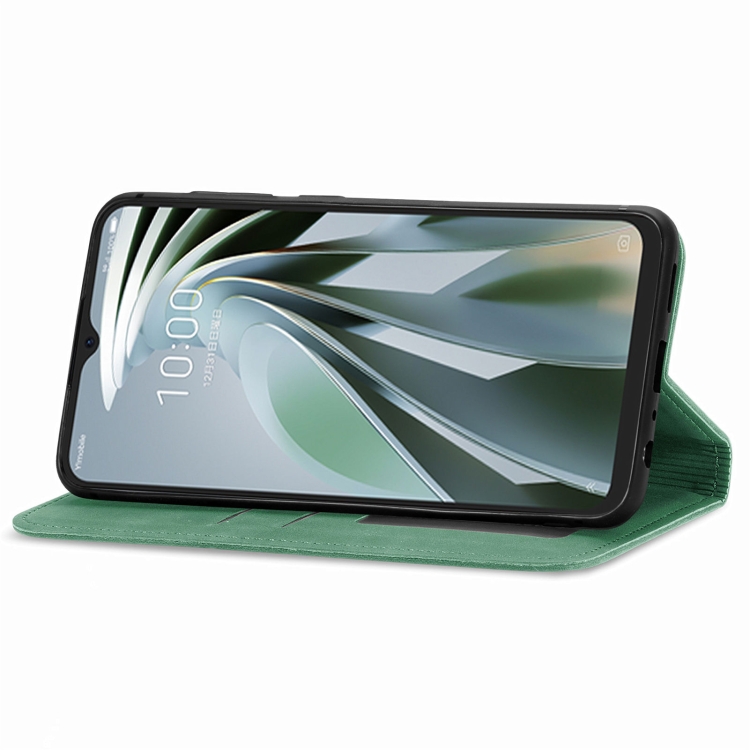 Funda de Cuero Magnética para ZTE Libero 5G Iv con Sensación de Piel Retro (Verde)