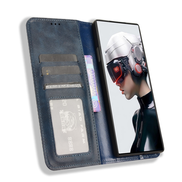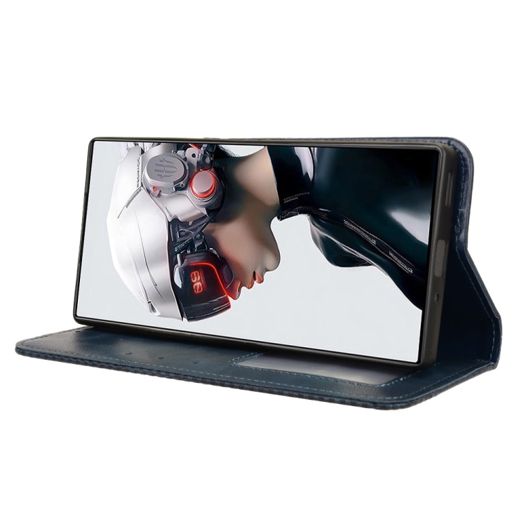 Funda para ZTE Nubia Red Magic 9 Pro Cuero Textura Retro con Hebilla Magnética (Azul)