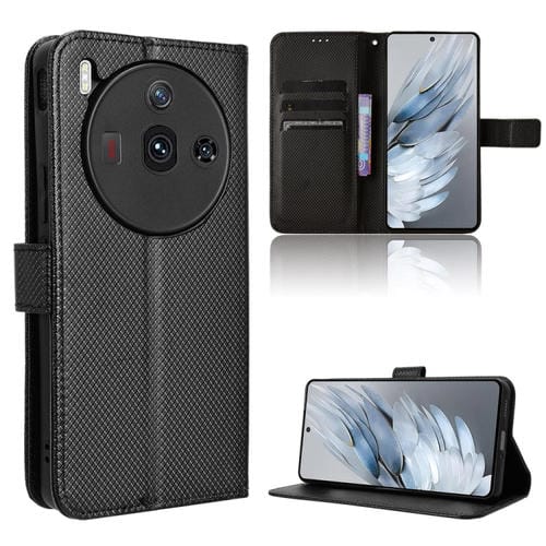 Funda de Cuero para ZTE Nubia Z50S Pro con Textura de Diamante (Negro)