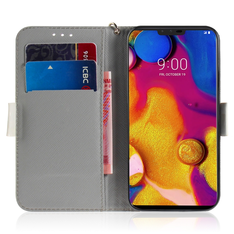 Funda de Cuero con Tapa Horizontal y Soporte LG V40 Thinq (Cute Cat) con Ranuras para Tarjetas y Billetera