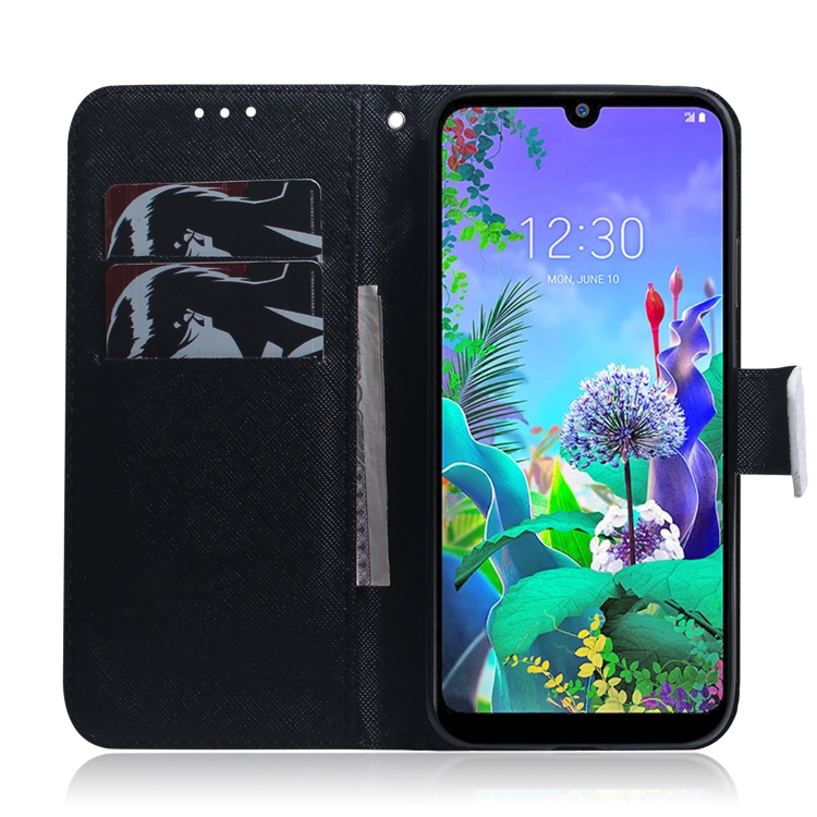 Funda de Cuero con Tapa Horizontal y Soporte para LG Q60 (Anger) con Ranuras para Tarjetas y Billetera