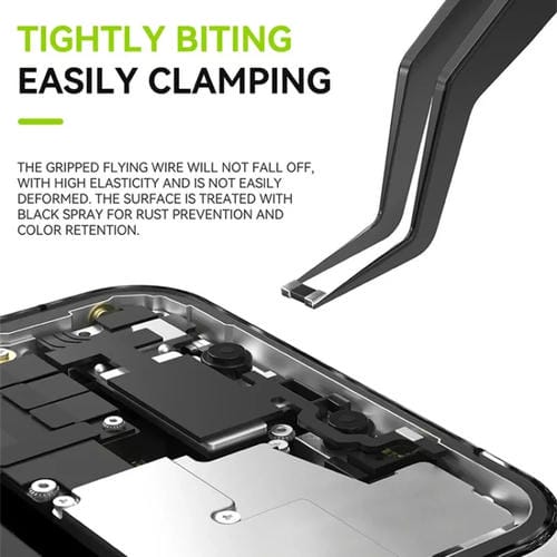 - Punta puntiaguda pulida con precisión para manipular objetos desde 0,01 mm, diseño antideslizante con puntos ranurados, Cable volador de alta elasticidad y superficie tratada para prevenir oxidación, adsorción antimagnética para manejo seguro de Piezas delicadas