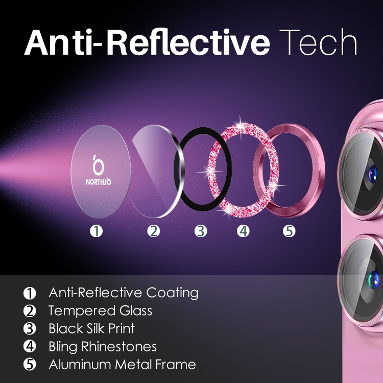 Protector de Lente de Cámara Northjo para iPhone 16/16 Plus Película Anillo Metal Vidrio Templado (Rosa)