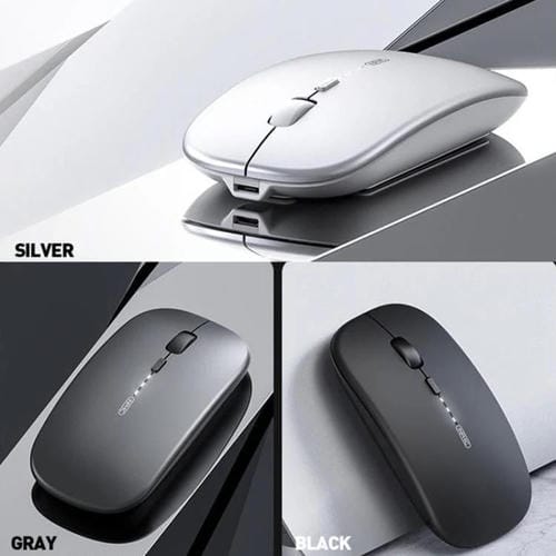 Ratón inalámbrico Bluetooth trimodo Inphic M1 PRO, recargable, silencioso y con indicador de nivel de batería (plateado)