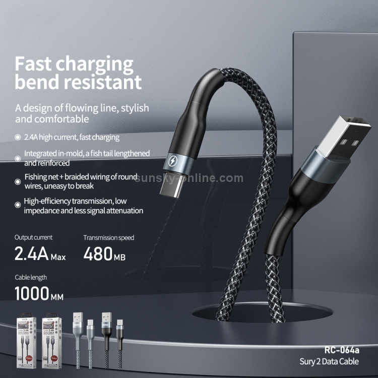 El Cable de datos y Carga rápida Remax RC-064A Sury 2 Series es un accesorio diseñado para ofrecer una transferencia eficiente y una Carga veloz de dispositivos compatibles con Puerto USB-C. Con una longitud de 1 metro, este Cable permite una Conexión cómoda y versátil entre dispositivos con entrada USB-C y Puertos USB tipo A estándar. Su diseño aerodinámico con cola larga proporciona una mayor durabilidad y resistencia a la Flexión, lo que extiende su vida útil incluso en condiciones de uso frecuente. Soporta una Corriente máxima de 2.4A, facilitando una Carga rápida y segura para smartphones, tablets y otros dispositivos electrónicos modernos.