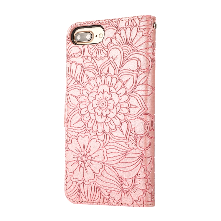 Funda de Cuero Siente la Piel Girasol En Relieve Horizontal con Soporte y Ranuras para Tarjetas y Billetera para iPhone 6 Plus / 6S Plus (Oro Rosa)