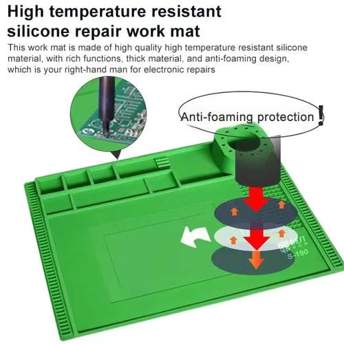 - 1x Almohadilla de Silicona BEST S-190 Resistente a Altas Temperaturas para Banco de Trabajo (Gris)