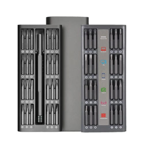 El Juego de 49 destornilladores A49 es un Conjunto profesional diseñado para la reparación y mantenimiento de dispositivos electrónicos como Teléfonos Móviles, tabletas, Computadoras Portátiles y otros equipos de precisión. Este kit incluye un mango ergonómico de aleación de aluminio con cola giratoria y 48 cabezas magnéticas fabricadas en acero S2 con una dureza de hasta 60 grados, que garantizan durabilidad y precisión en el desmontaje. Su diseño innovador y compacto facilita el almacenamiento y transporte, siendo compatible con una amplia variedad de tornillos utilizados en electrónica y electrodomésticos. Es una herramienta esencial para usuarios que reparan por cuenta propia y técnicos especializados que requieren un set completo y fiable para sus labores de mantenimiento.
